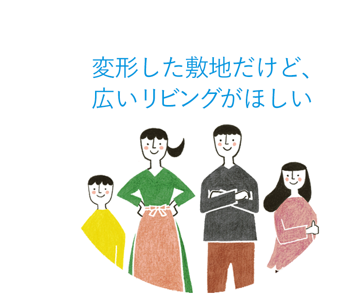 それは、変形した敷地でも同じことです。変形敷地と言えど、心地よい場所は必ずあります。それを見つけ出し、開放するところは開放し、閉じるところは閉じる設計を行うことで、たまりの場となります。