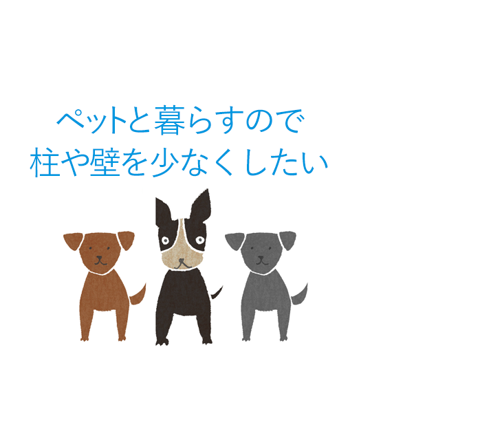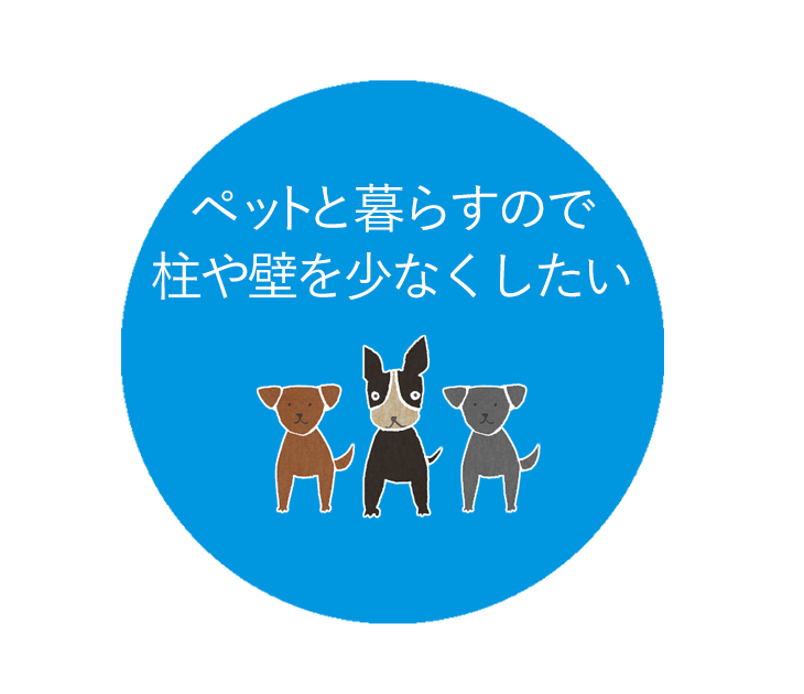 「ペットと暮らしたいので、柱や壁で、見通せないないのと、部屋が区切られているような家は嫌なんです。」