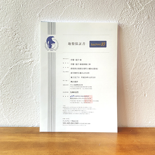 万が一、地盤の不同沈下により建物が損害を受けた場合、お引渡しより最長20年間、最高5000万円まで損害費用を補償します。