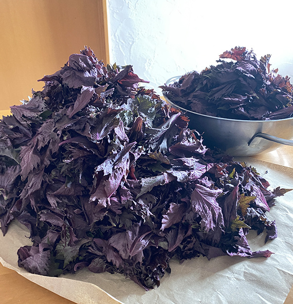 今年は、無農薬の立派な赤紫蘇に出会えたので