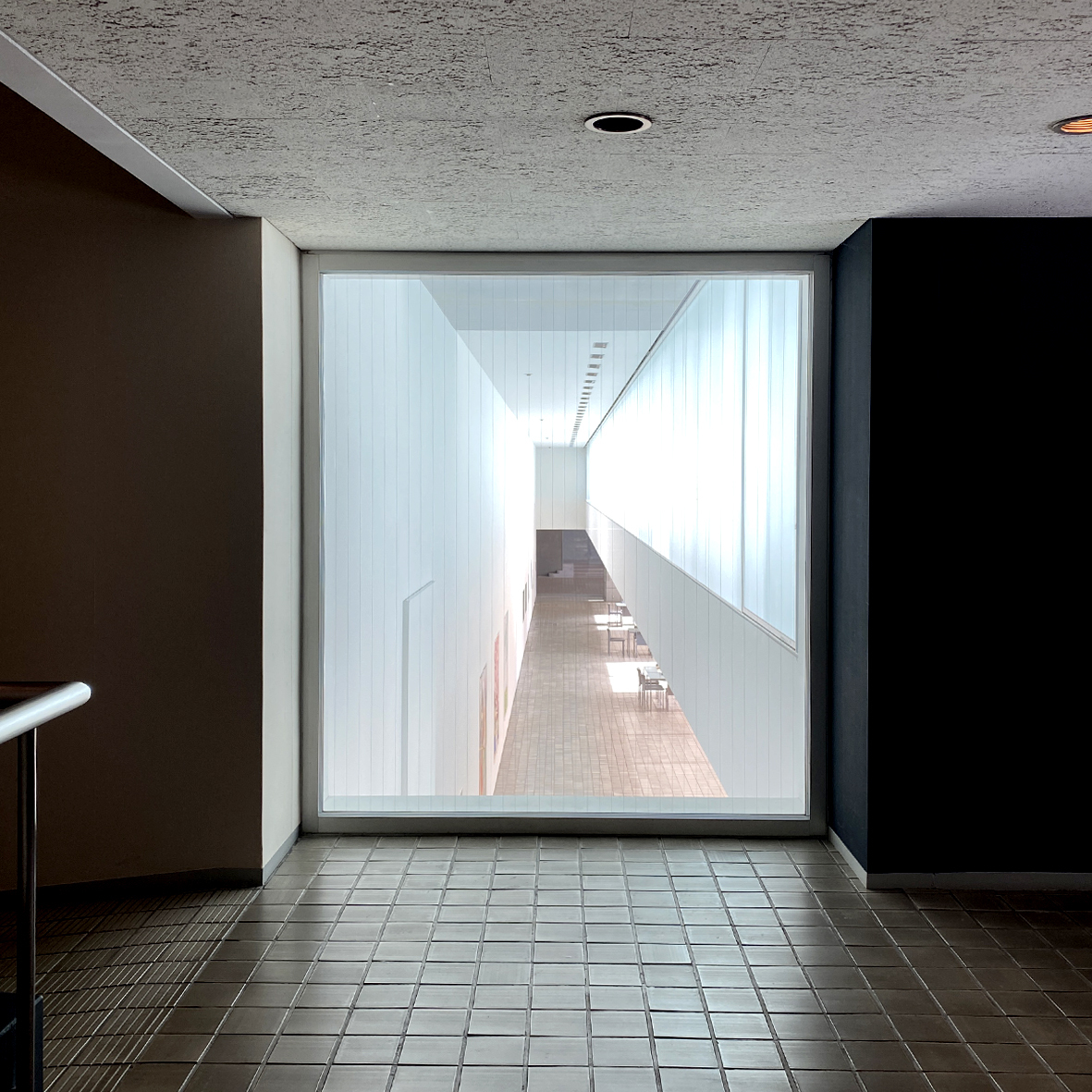 この長く連続した正方形の2F窓から注がれるやわらかな光がトンネルの正体。